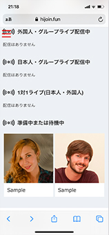 お客様とアジアン外国人で1対1、またはアジアン外国人が配信しているのをグループで見る、2種類の配信形態があります。